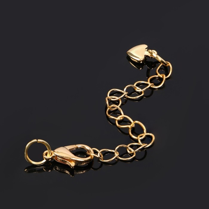 Замок-карабин родированный 1,2 × 0,5 см «Сердечко» с удлинителем 5,5 см, цвет золото