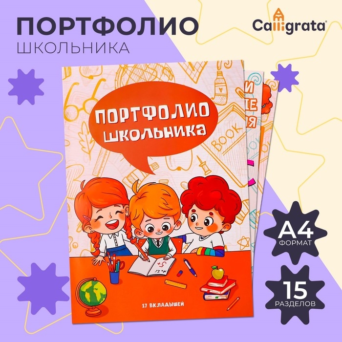 Листы-вкладыши для портфолио школьника, 15 разделов, 17 листов "Дети", в папке
