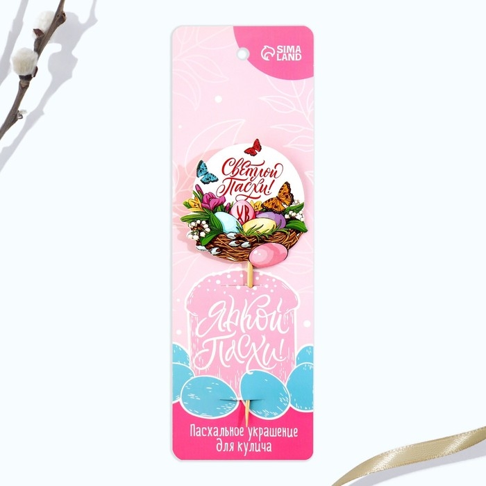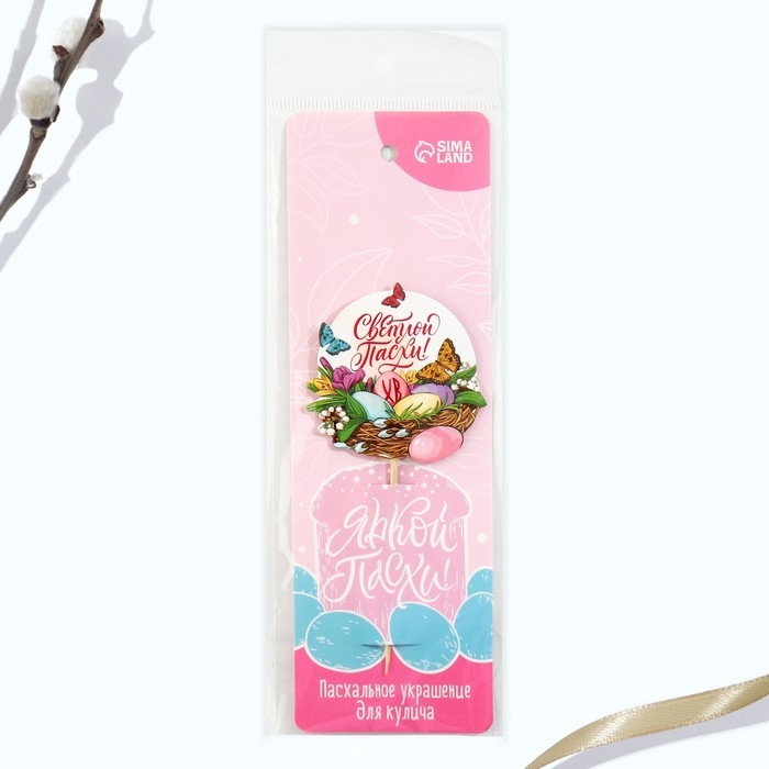Топпер для украшения кулича «Яркой Пасхи!» на пасху, 7,7 х 4,5 см