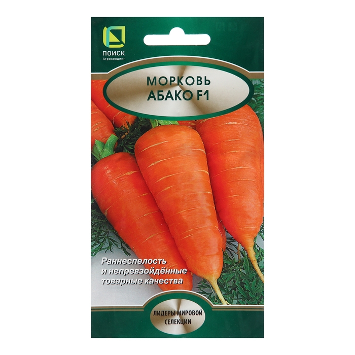 Морковь Абако F1 - раннеспелость и непревзойдённые товарные качества. Ранний гибрид, созревает через 90-95 дней после всходов. Сортотип Шантенэ. Корнеплоды усечено-конические, с тонкой сердцевиной, длиной 14-16 см, диаметром 4-5 см. Отличаются тёмно-оранжевой внешней и внутренней окраской. Растения устойчивы к альтернариозу, цветушность отсутствует. Рекомендуется для потребления в свежем виде, переработки и хранения.
