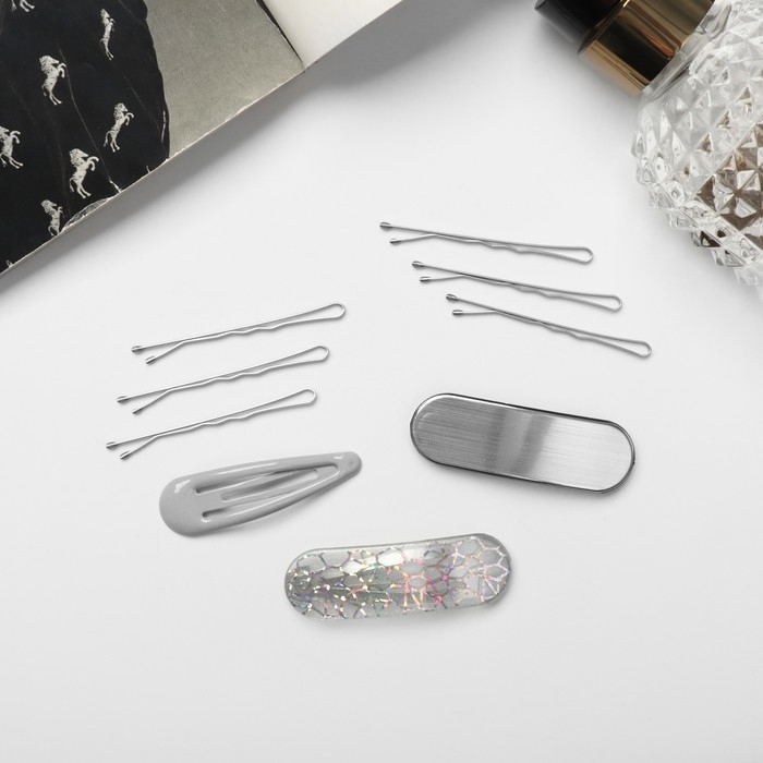 Невидимка для волос "Атлас" (набор 9 шт) 5 см, серебро