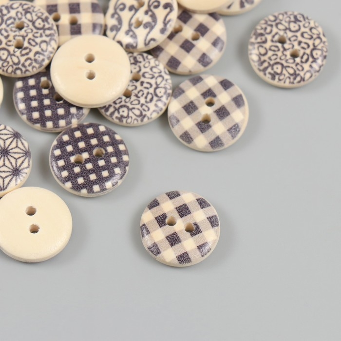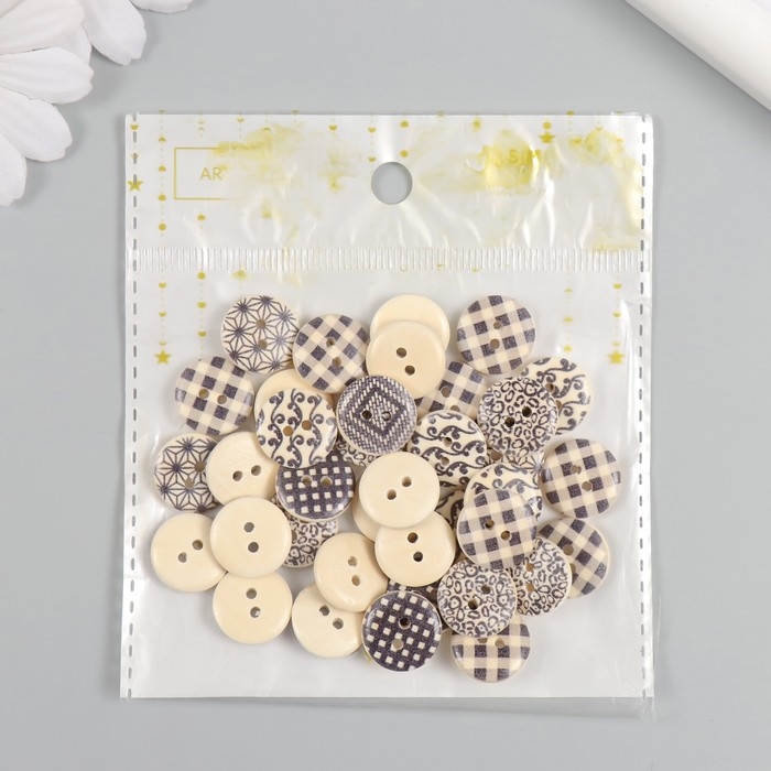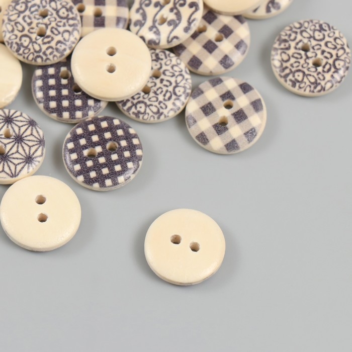 Пуговицы дерево для творчества 2 прокола "Узоры" чёрный набор 40 шт 1,5х1,5х0,4 см