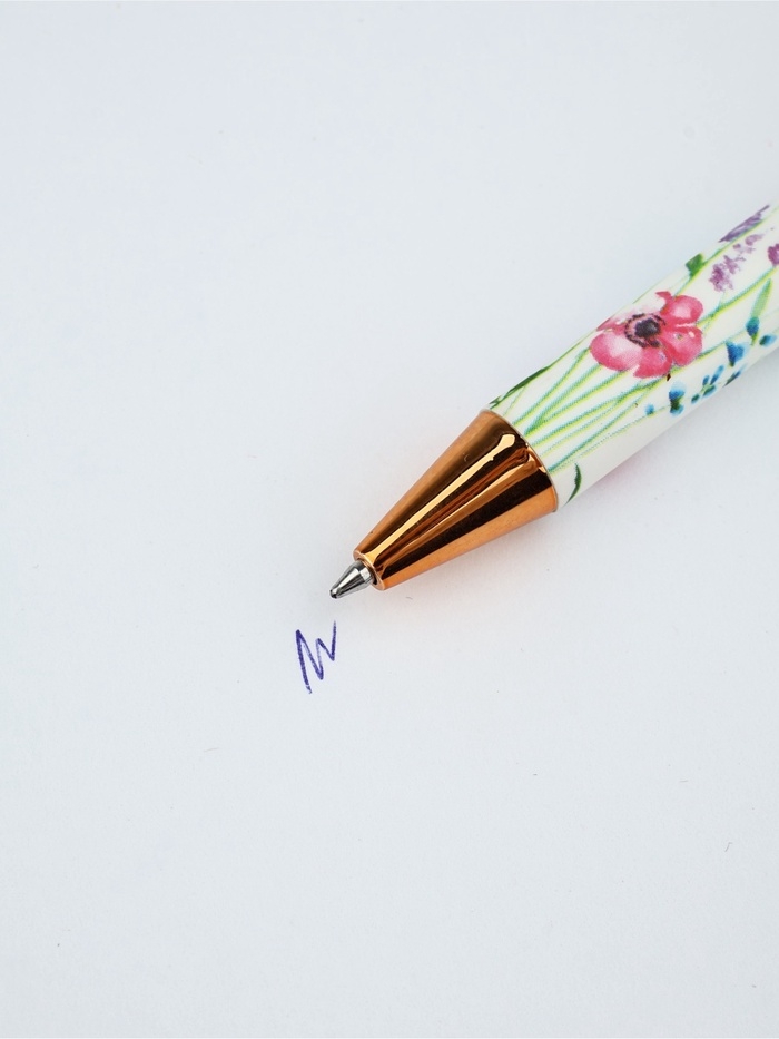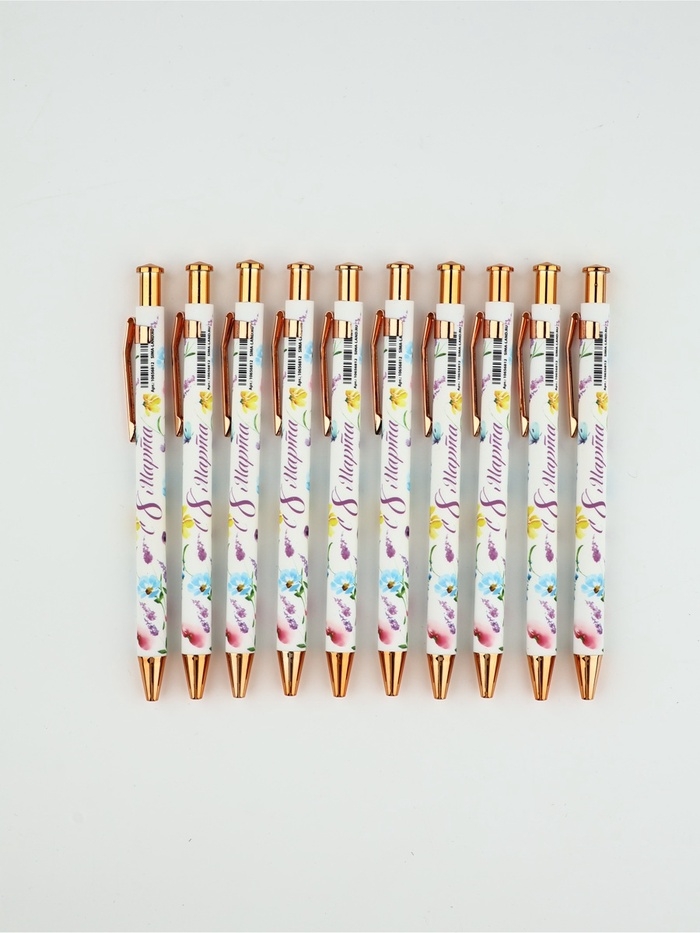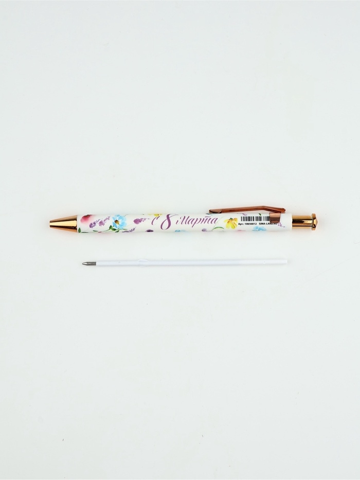 Ручка шариковая синяя паста, пластиковый корпус «С 8 марта сирень»