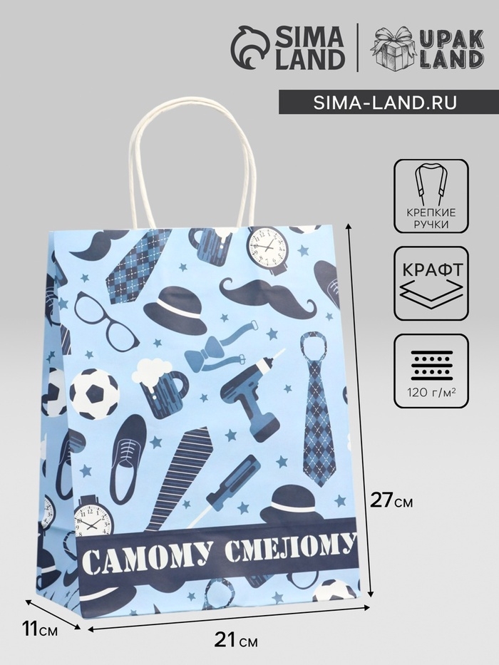 Пакет подарочный крафт "Самому смелому" 21 х 11 х 27 см