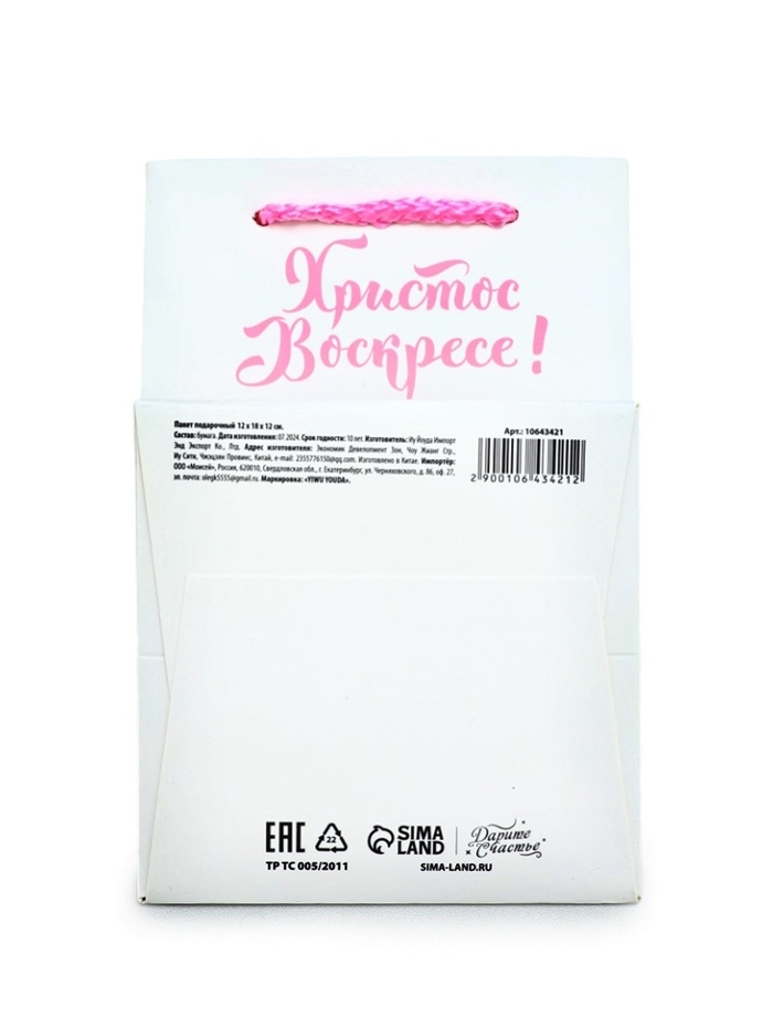 Пакет подарочный под кулич «Пасха», 12 х 18 х 12 см