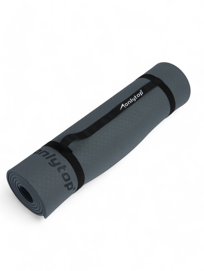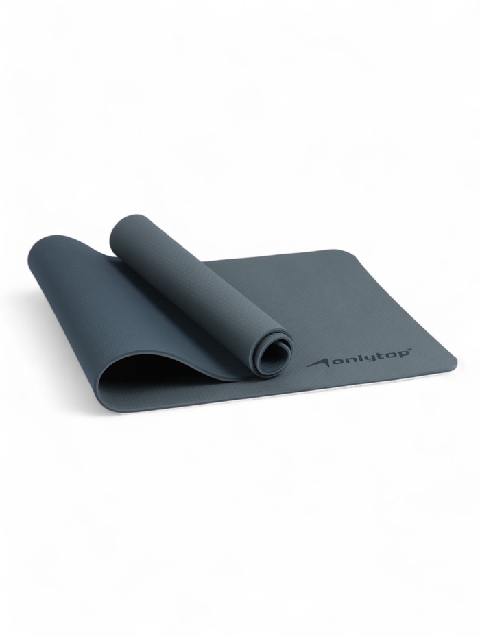 Коврик для фитнеса и йоги ONLYTOP, 183x61x 0,8 см, цвет графитовый/темно-серый