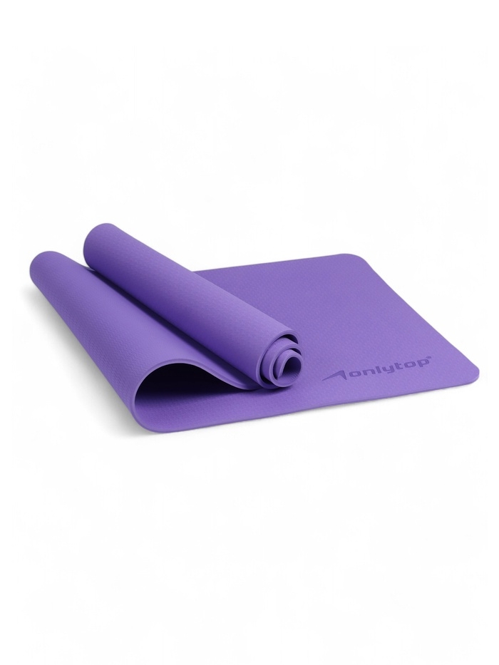 Коврик для фитнеса и йоги ONLYTOP, 183x61x 0,8 см, цвет фиолетовый/темно-фиолетовый