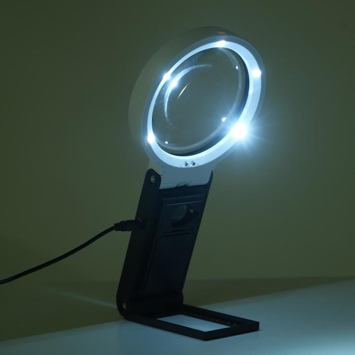 Лупа настольная складная с подсветкой 5-25х