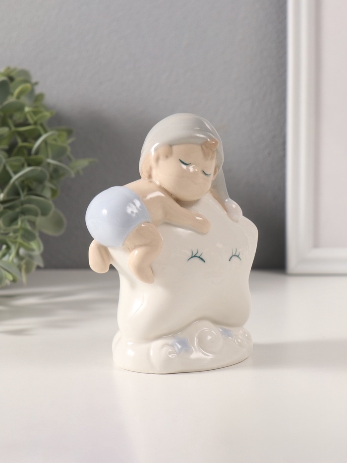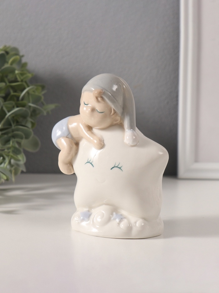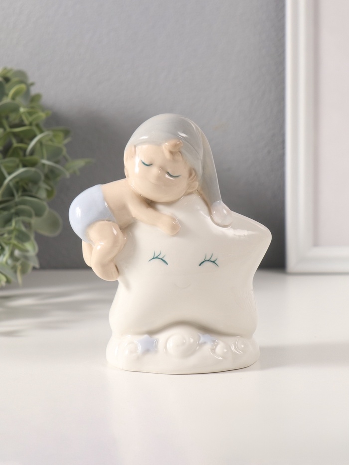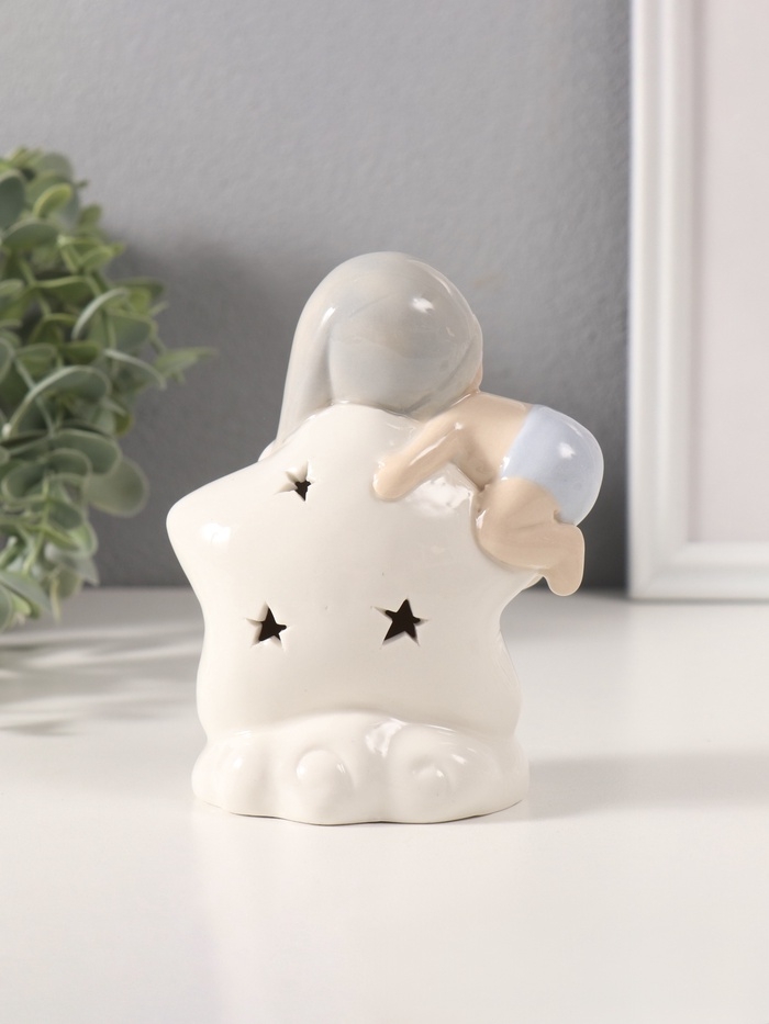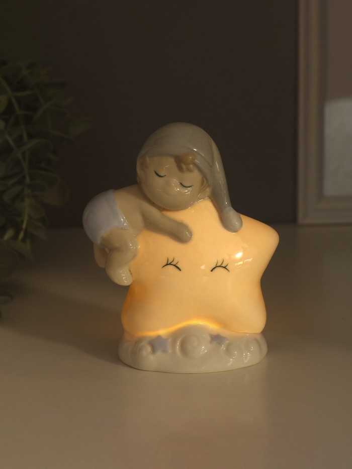 Сувенир керамика свет "Малыш в голубом колпаке на звёздочке" 6х10,5х12,5 см