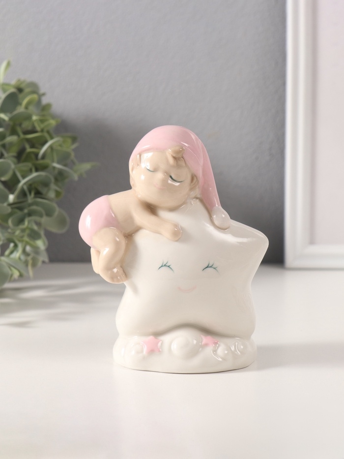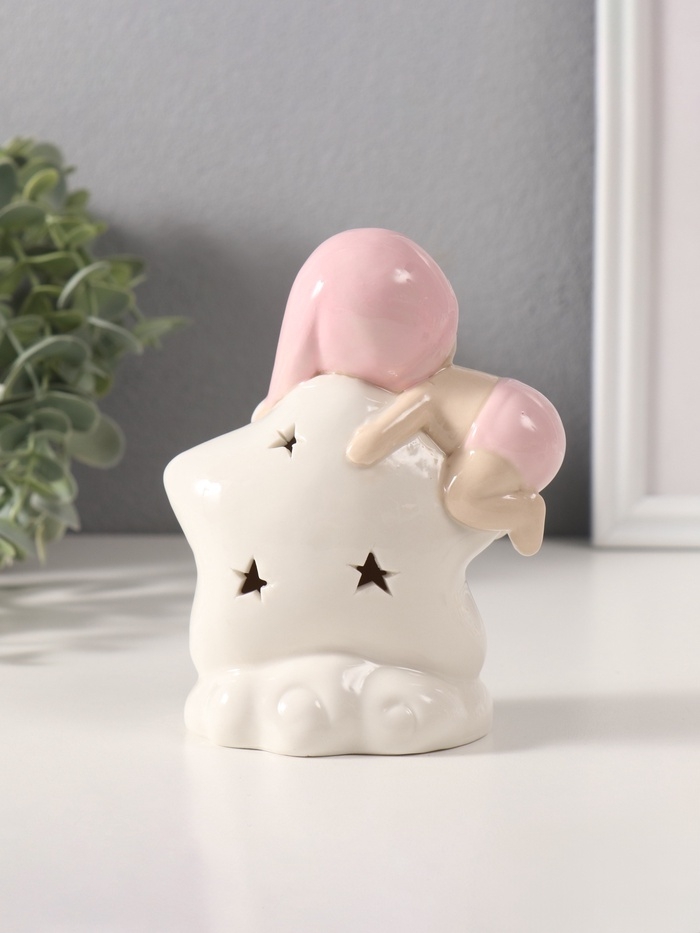 Сувенир керамика свет "Малышка в розовом колпаке на звёздочке" 6х10,5х12,5 см