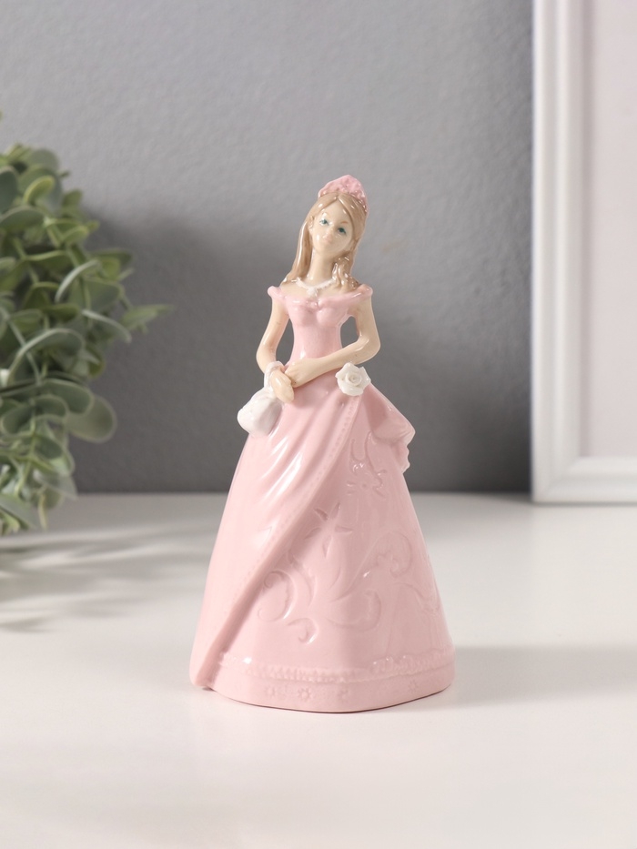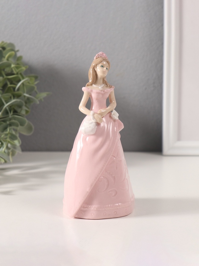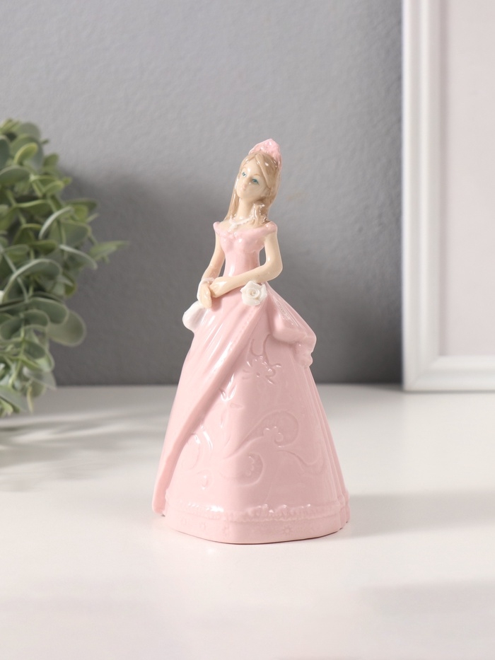 Сувенир керамика "Леди в розовом платье с сумочкой" 6,6х7,5х14,8 см