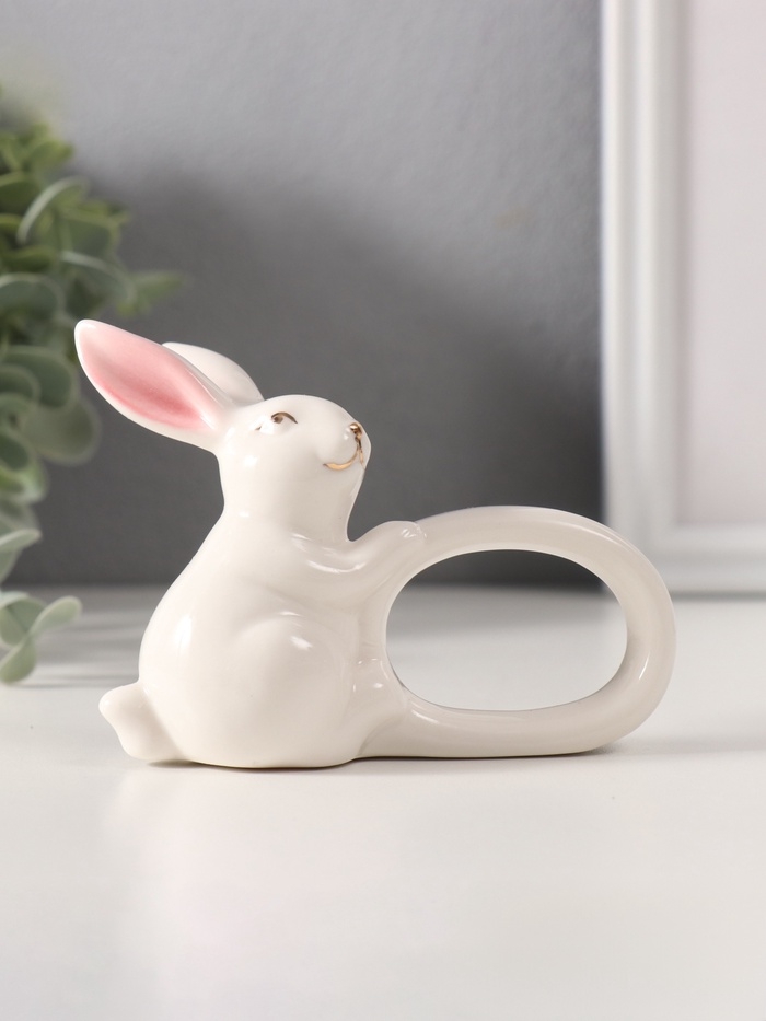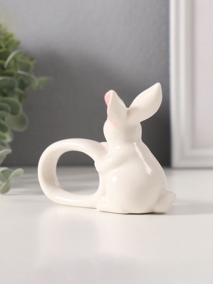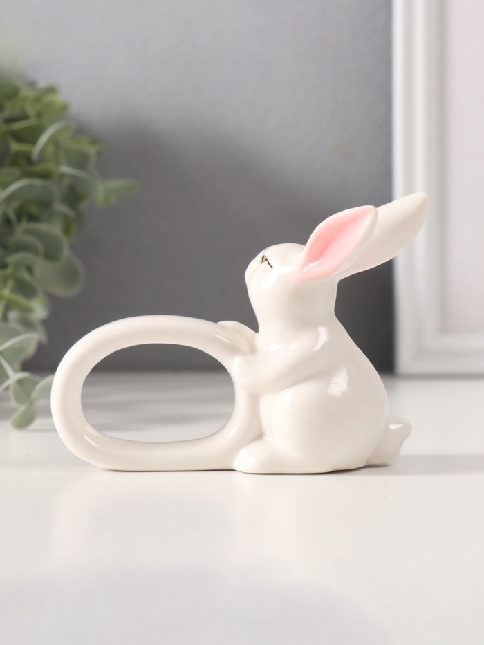 Сувенир керамика держатель д/салфеток "Белый кролик с розовыми ушками" 5х10х7,5 см