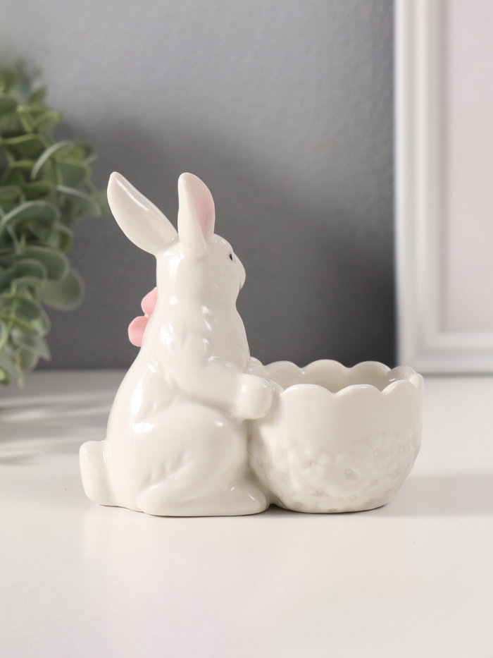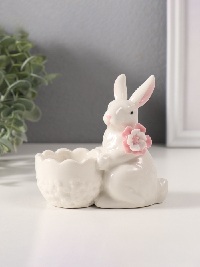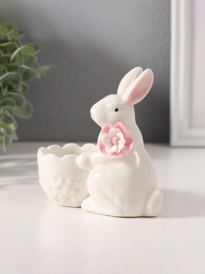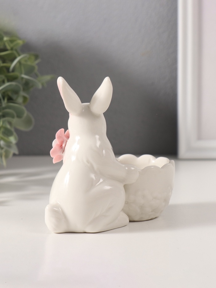Сувенир керамика подставка "Белый кролик с цветочком" 5,6х10,5х10 см