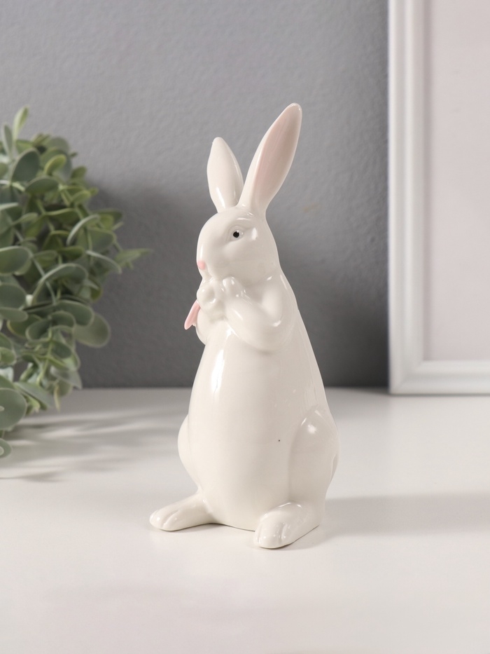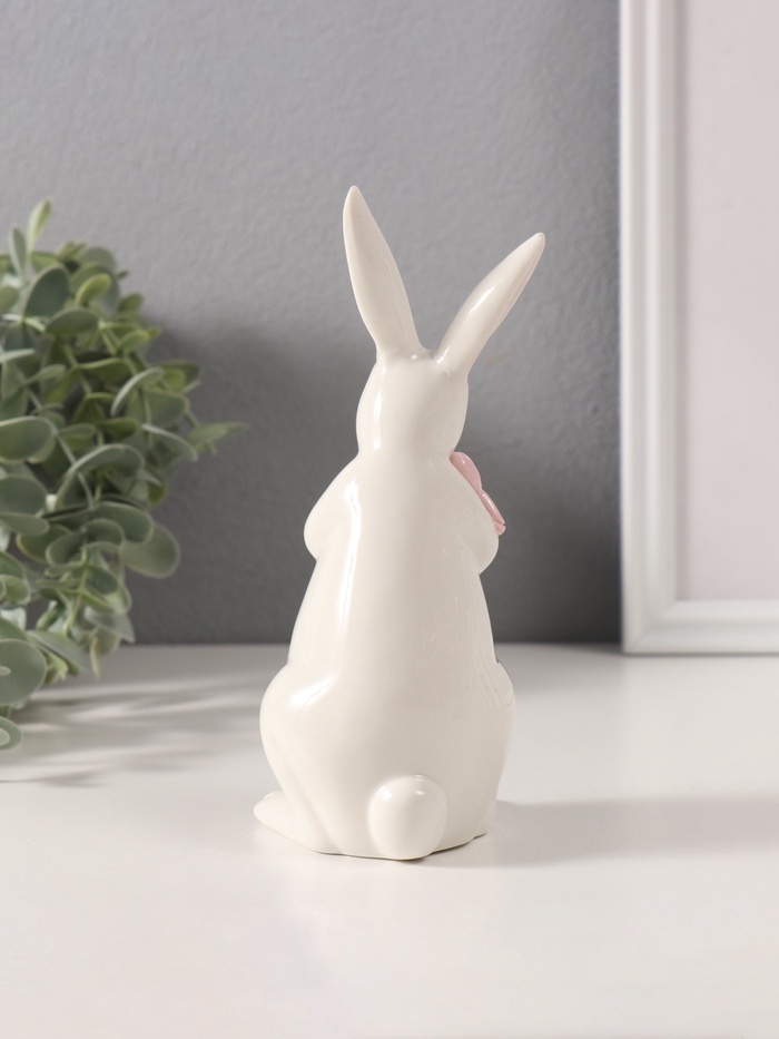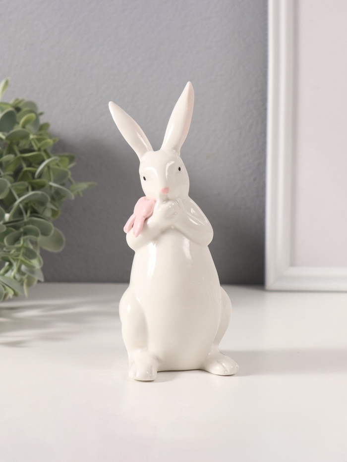 Сувенир керамика "Белый кролик с розовым бантиком" 6х6,5х16 см