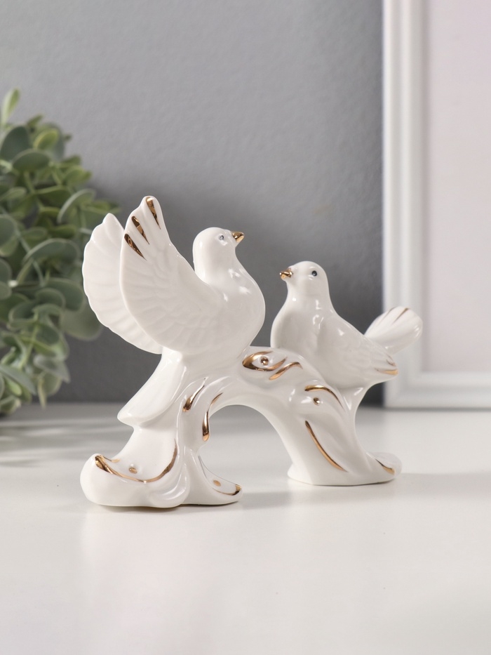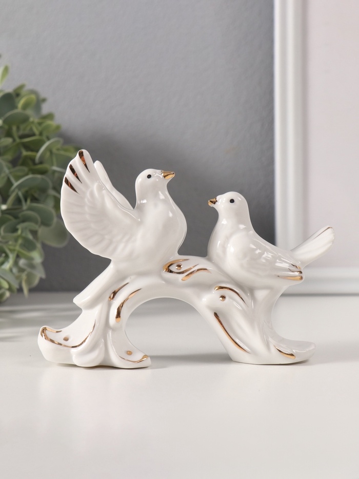 Сувенир керамика "Белые голуби на дуге" с золотом 3х12х9 см