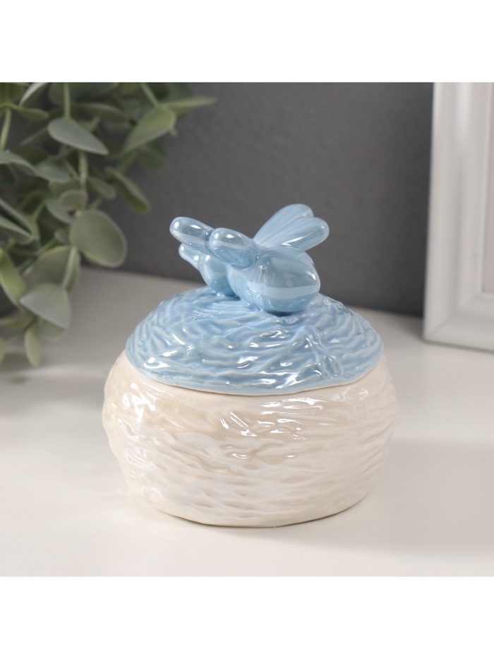 Шкатулка керамика "Пчёлка на улье" голубой перламутр 8,5х8,5х8 см