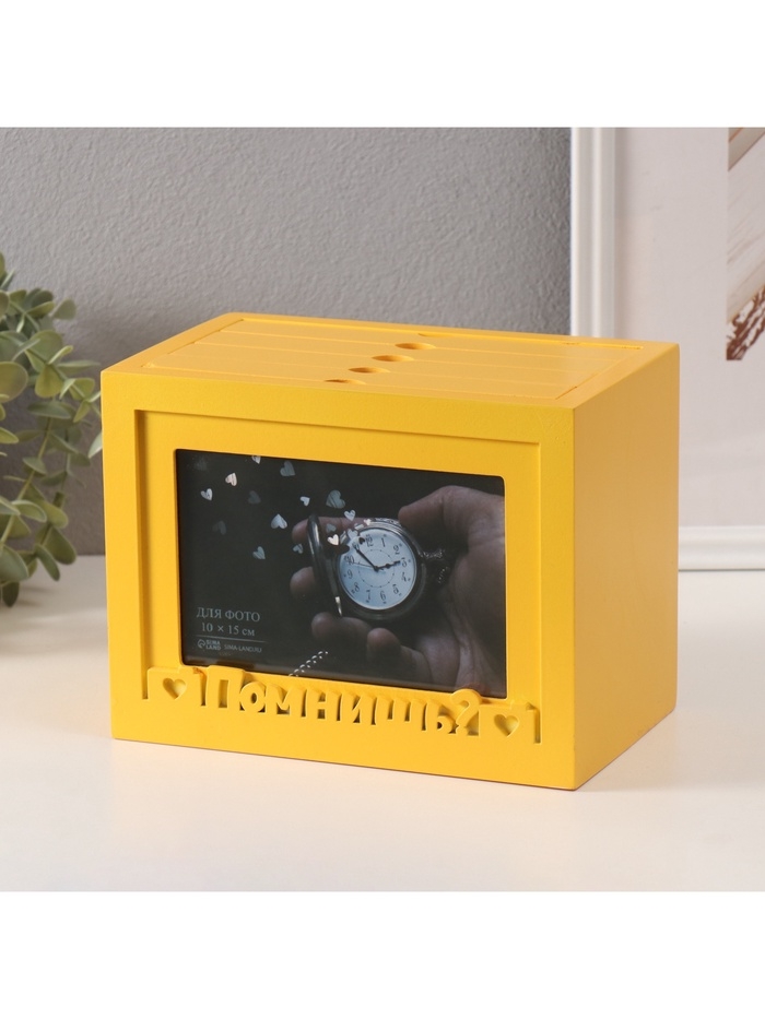 Фотоархив на 96 фото 10х15 см + рамка 10х15 см "Помнишь?" жёлтый 20х15х12 см