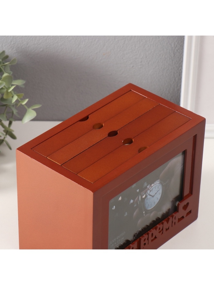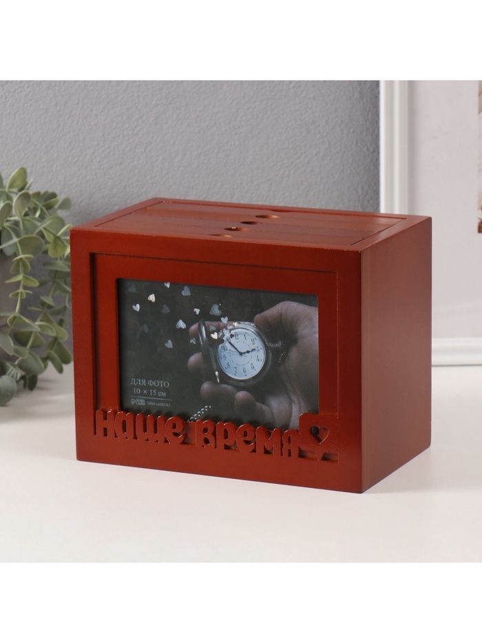 Фотоархив на 96 фото 10х15 см + рамка 10х15 см "Наше время" красное дерево 20х15х12 см