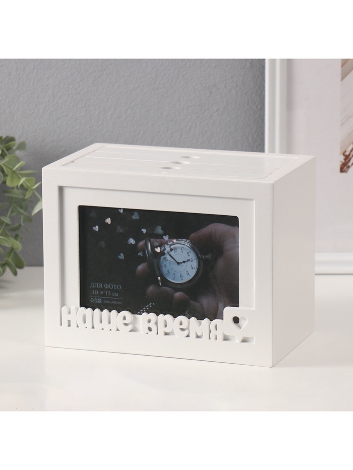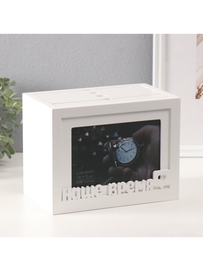 Фотоархив на 96 фото 10х15 см + рамка 10х15 см "Наше время" белый 20х15х12 см