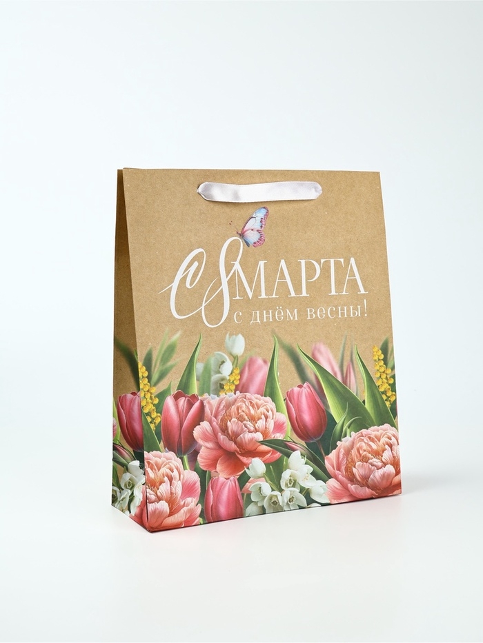 Пакет подарочный крафтовый «8 марта», M 25.5 х 9 х 30 см
