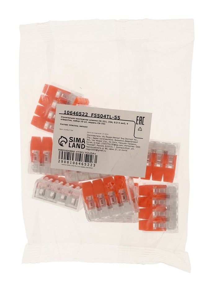 Строительно-монтажная клемма СК-321, 32А, 0.2-4 мм2, 4 отверстия, набор 10 шт