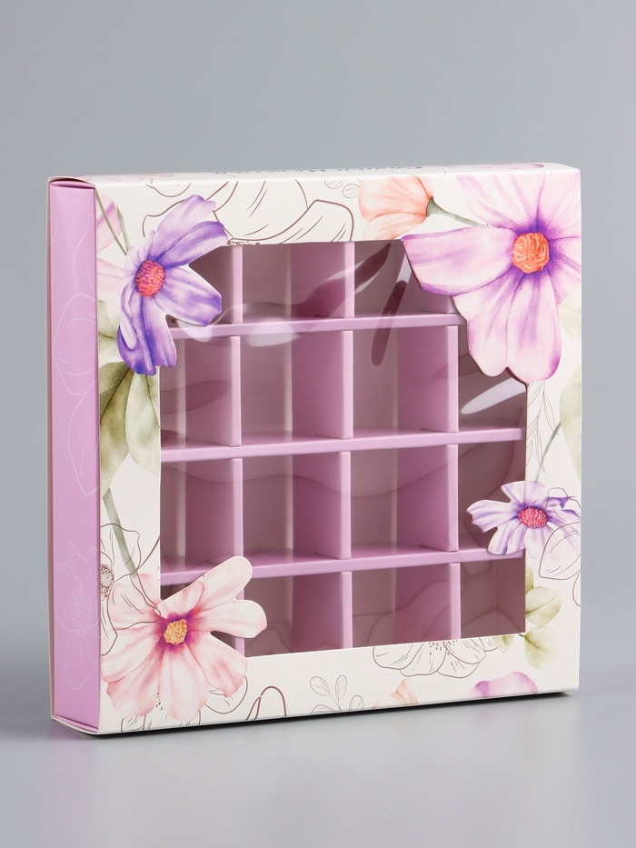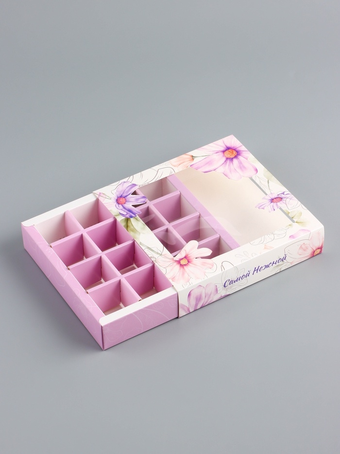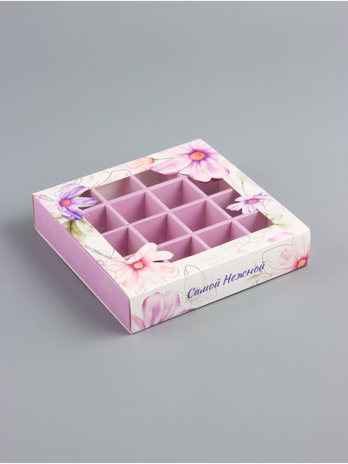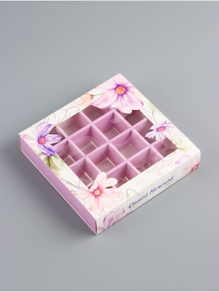 Коробка для конфет 16 шт "Самой нежной", 17,7 х 17,7 х 3,8 см. Кондитерская упаковка