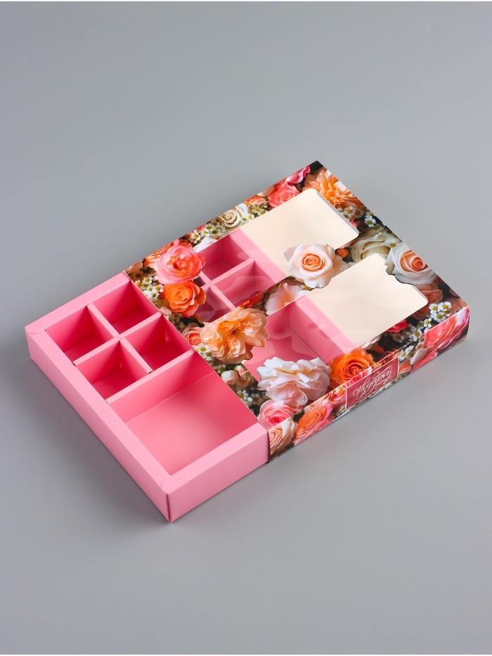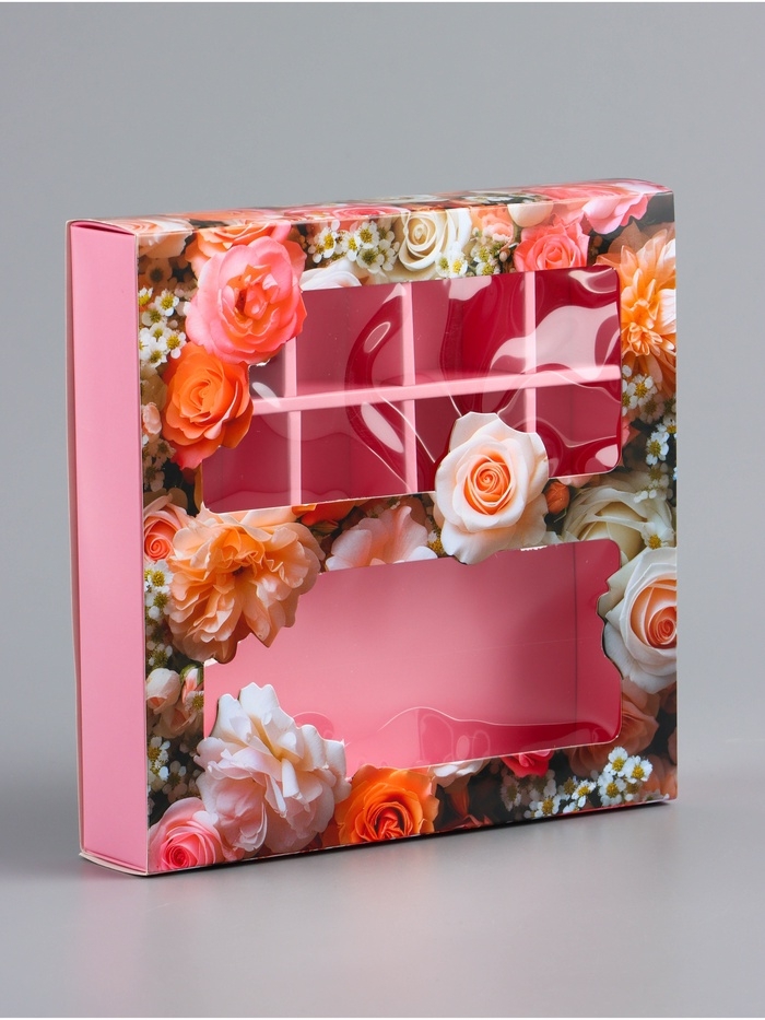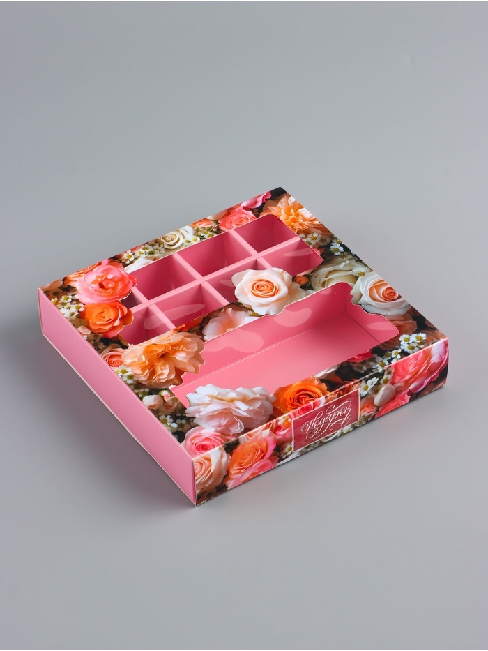 Коробка для 8 конфет + шоколад, с окном "Поздравляю", 17,7 х 17,8 х 3,8 см. Кондитерская упаковка