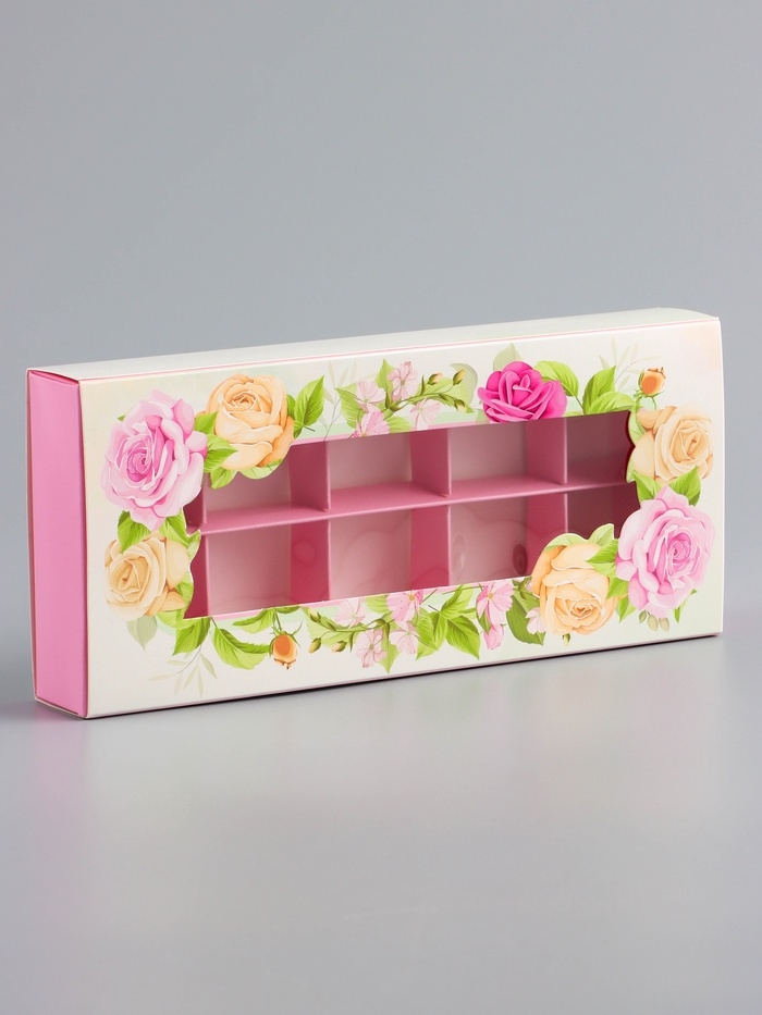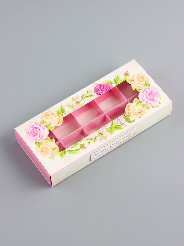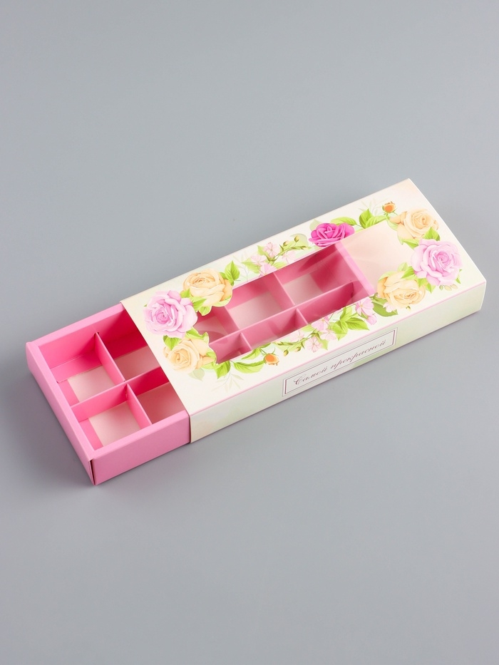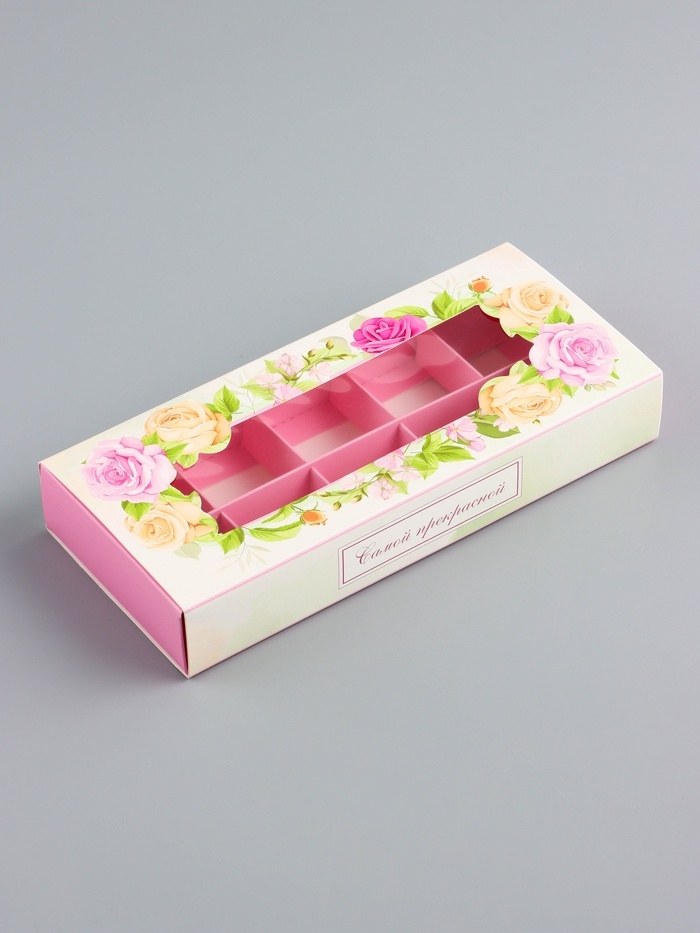 Коробка складная для 10 конфет "Самой прекрасной", 9,8 х 22 х 3,5 см. Кондитерская упаковка