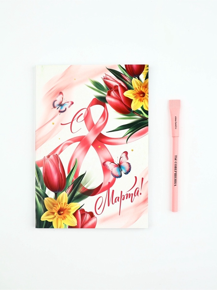 Набор: ежедневник и эко ручка "Самой нежной. С 8 марта!"