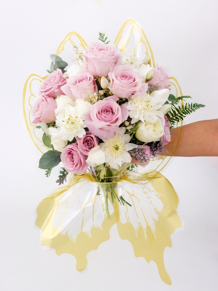 Декор флористический для букетов, "Крылья бабочки", золотая, 50х56 см