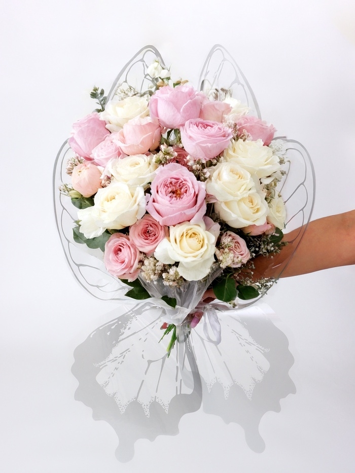 Декор флористический для букетов, "Крылья бабочки", серебро, 50х56 см
