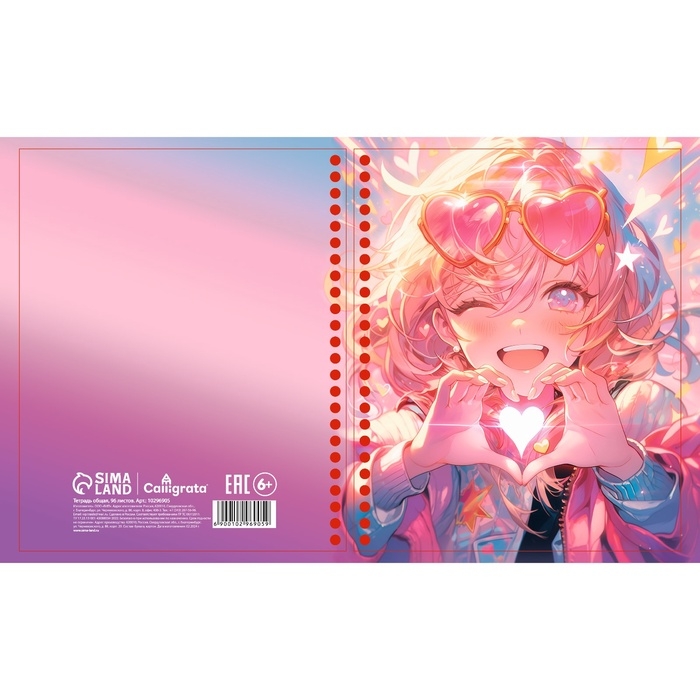 Тетрадь 96л кл на гребне Аниме. Девочка в очках, обл мел карт, блок офсет МИКС