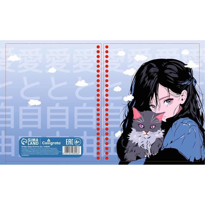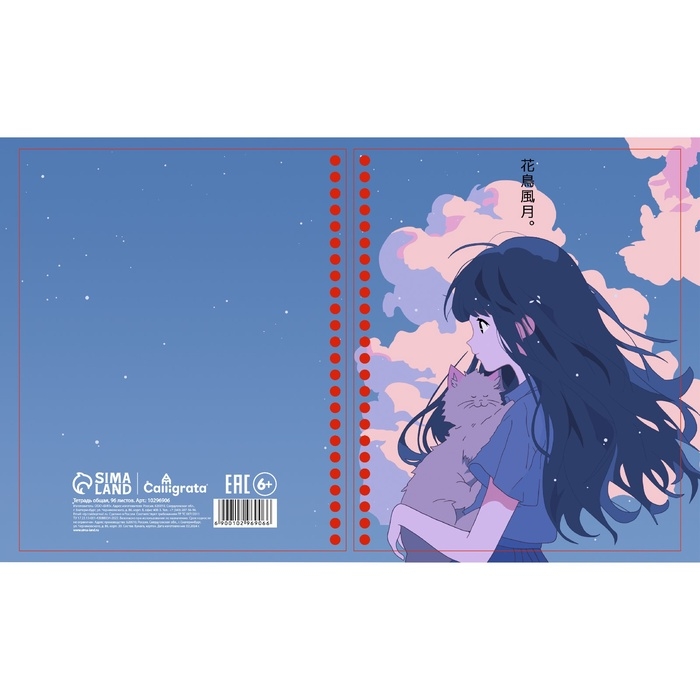 Тетрадь 96л кл на гребне Аниме Девочка с котом, обл мел карт, блок офсет МИКС