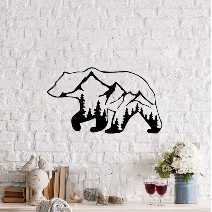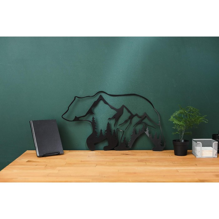 Панно металлическое "Медведь и горы" 60х35 см