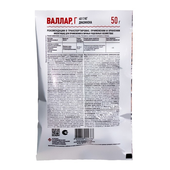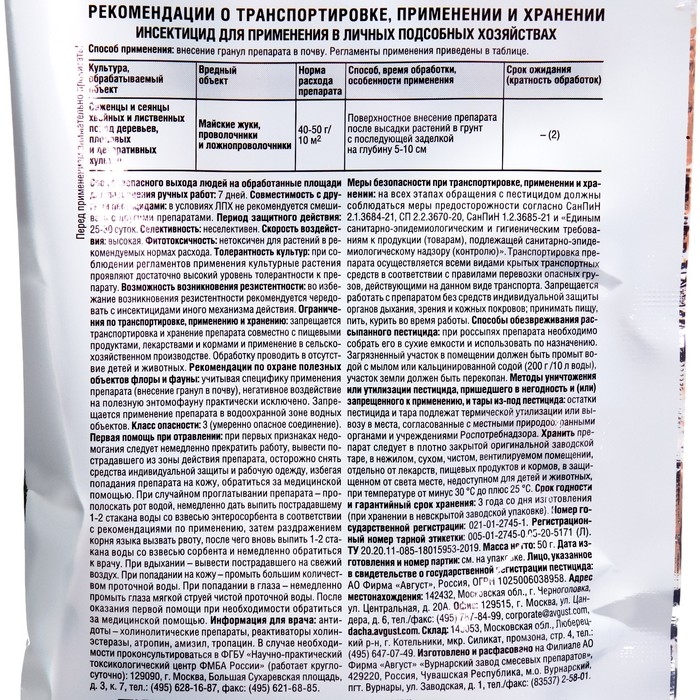 Средство от личинок майского жука, проволочника и ложнопроволочника "Август", "Валлар", 50 г
