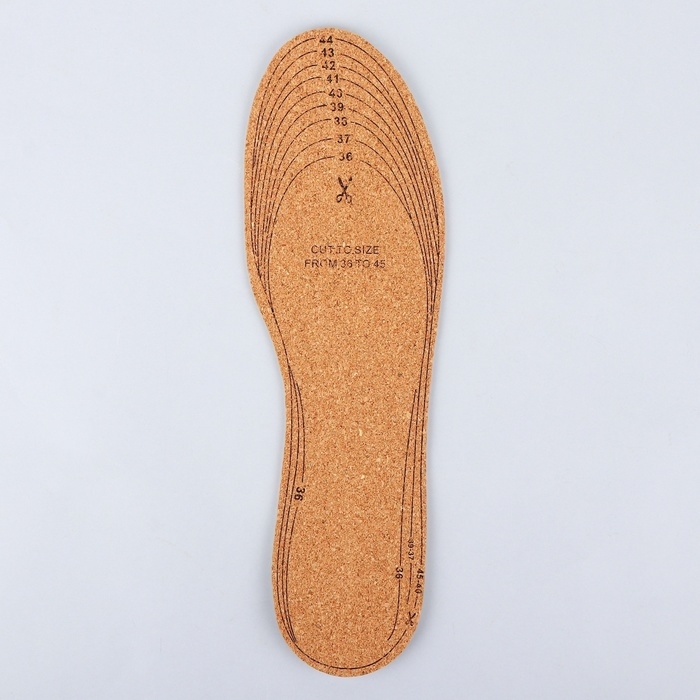 Стельки из коры пробкового дерева поддержат комфорт ваших ног в течение всего дня. Такой материал поглощает влагу и запахи, надолго сохраняет свежесть. Пористая структура обеспечивает циркуляцию воздуха и сухость ног. Благодаря текстильному слою изделия не будут скользить в обуви и натирать.
