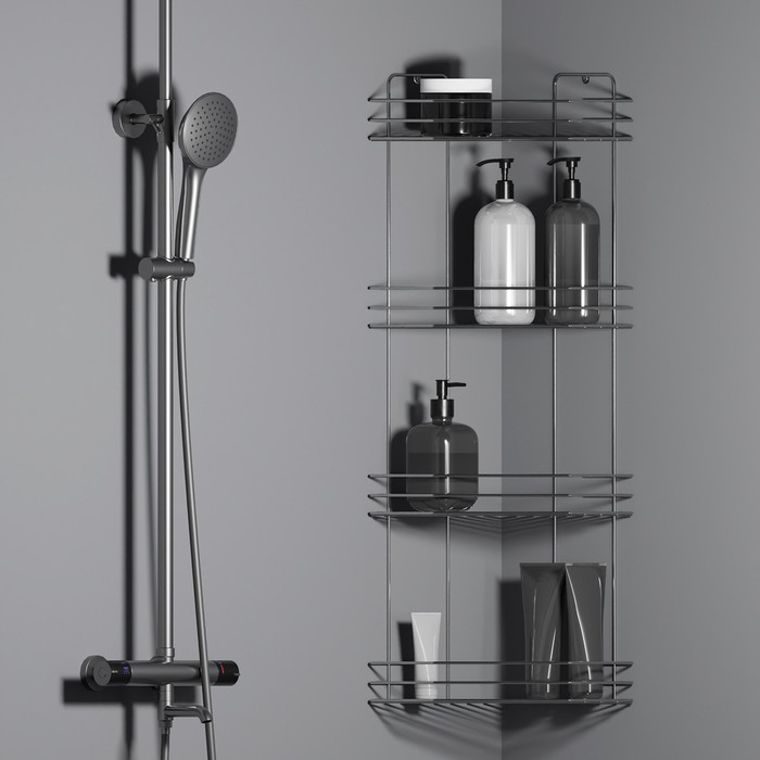 Полка для ванной угловая 3-х ярусная, 20×20×66 см, цвет чёрный