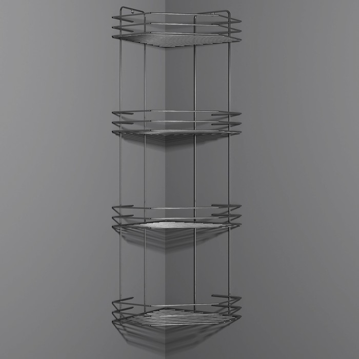 Полка для ванной угловая 4-х ярусная, 20,5×20,5×72 см, цвет хром