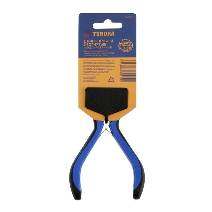 Длинногубцы изогнутые ТУНДРА mini, никелированные, двухкомпонентные рукоятки, 125 мм