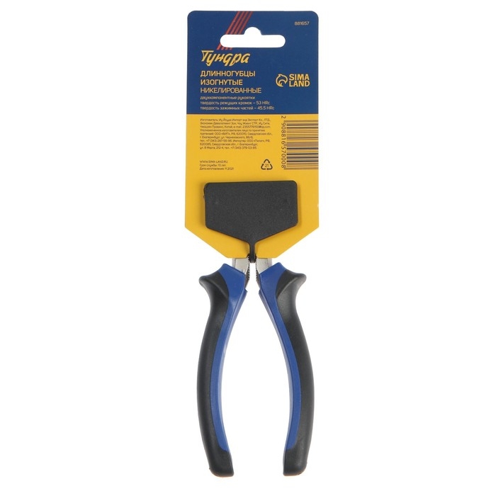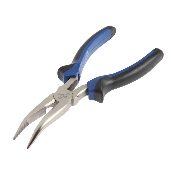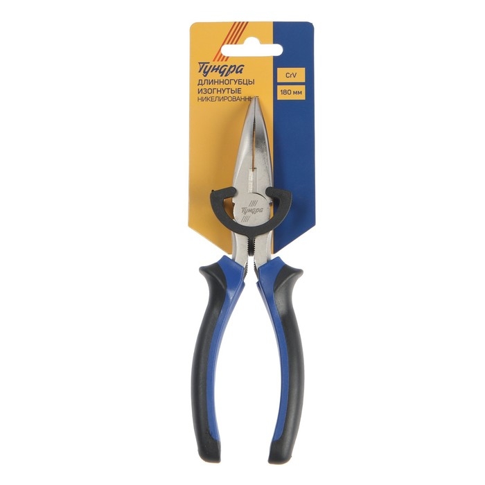 Длинногубцы изогнутые ТУНДРА, CrV, никелированные, двухкомпонентные рукоятки, 180 мм
