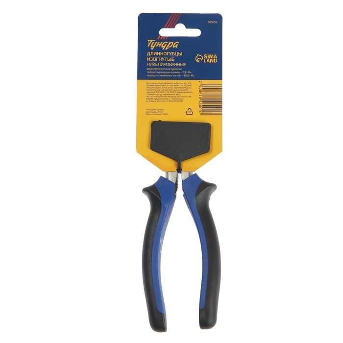 Длинногубцы изогнутые ТУНДРА, CrV, никелированные, двухкомпонентные рукоятки, 160 мм