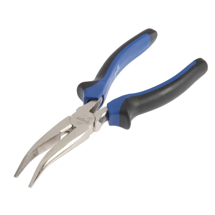 Длинногубцы изогнутые ТУНДРА, CrV, никелированные, двухкомпонентные рукоятки, 180 мм