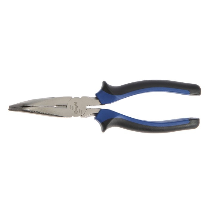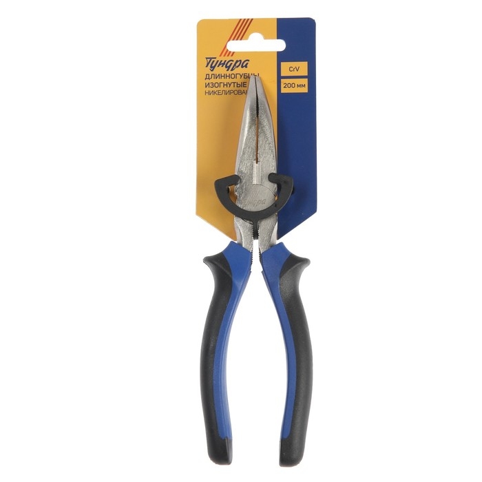 Длинногубцы изогнутые ТУНДРА, CrV, никелированные, двухкомпонентные рукоятки, 200 мм