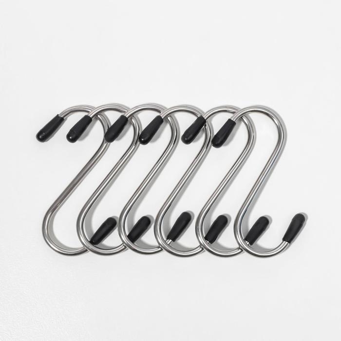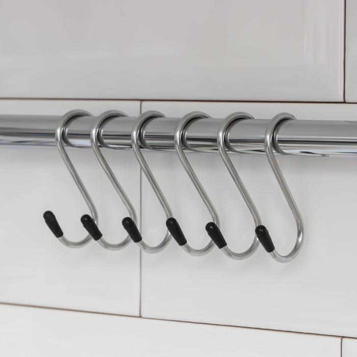 Набор крючков для рейлинга Доляна, d=1,5 см, 6 см, 6 шт, цвет хром