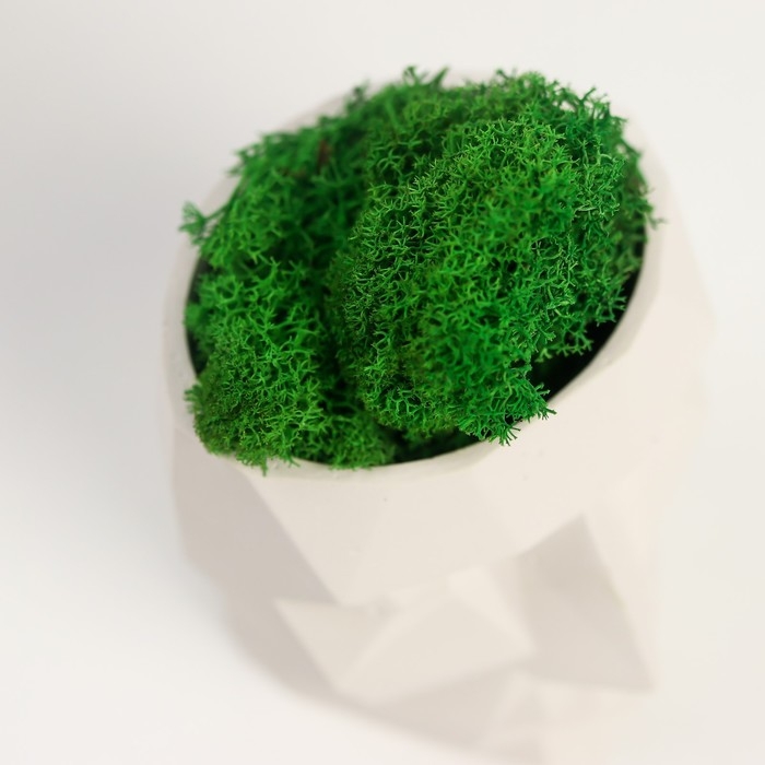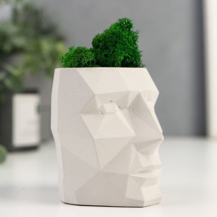 Кашпо бетонное "Голова" со мхом высота 8.5 см белое (мох зеленый стабилизированный)