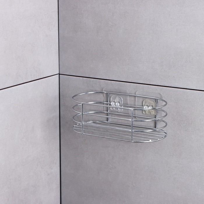 Держатель для ванных принадлежностей на липучке Доляна, 21×19×9 см, цвет белый