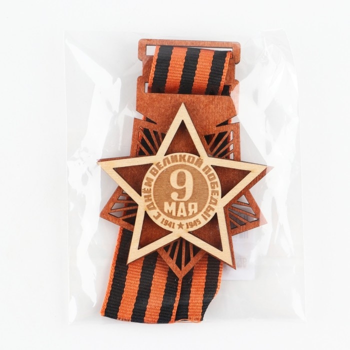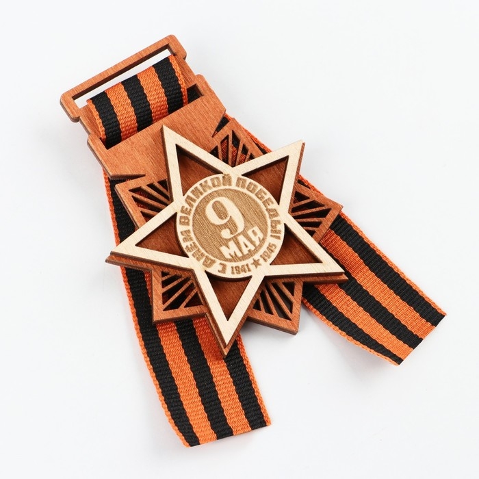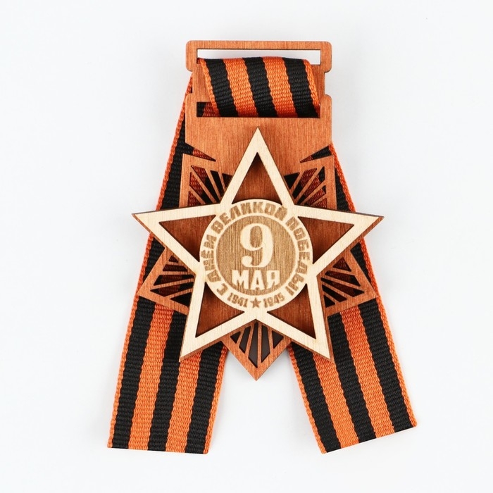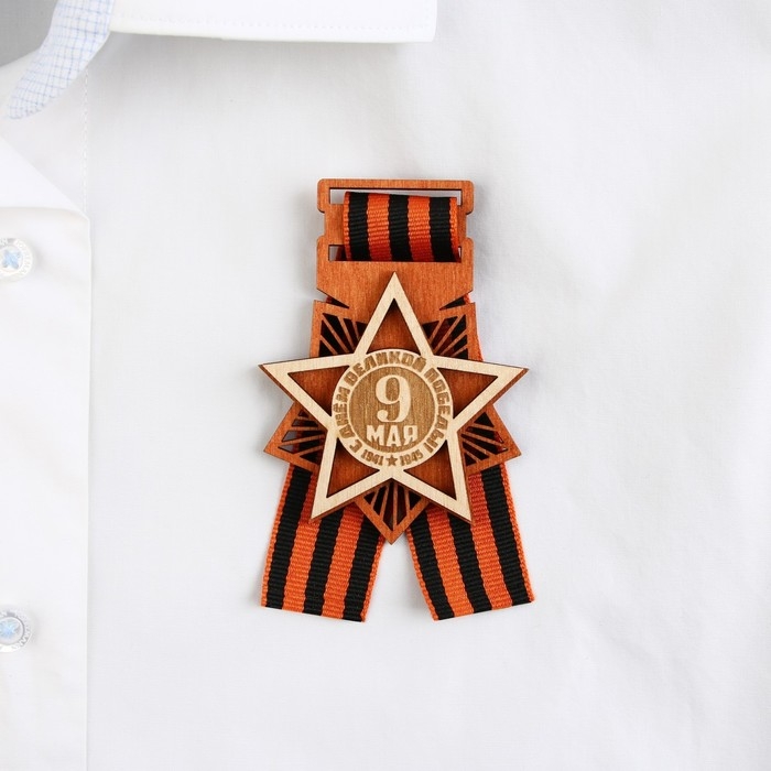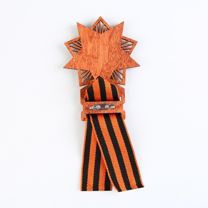 Значок деревянный с лентой «9 мая, орден», 6,1 х 8,2 см, георгиевская лента