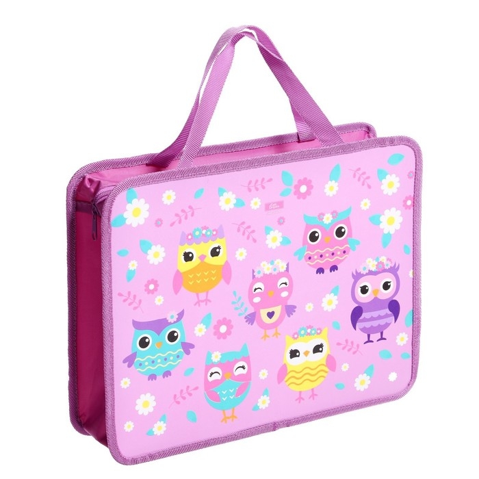 Папка с ручками А4, 330 х 260 х 75 мм, пластиковая, ручки-тесьма, Calligrata "Совушки"