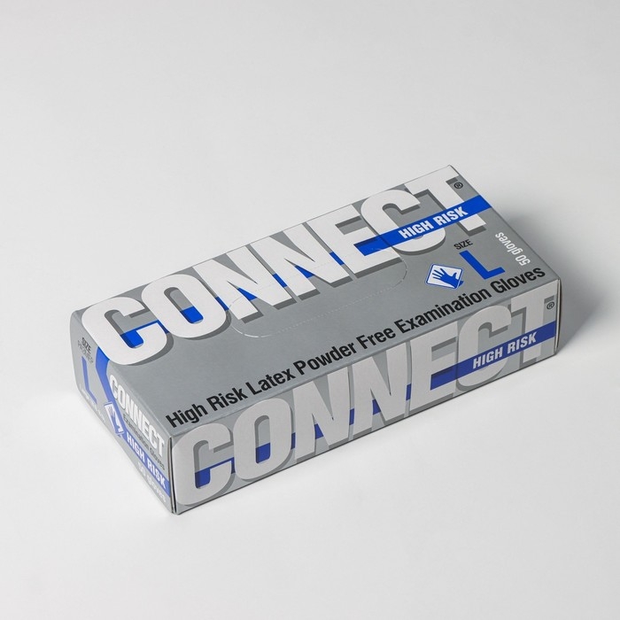 Перчатки латексные неопудренные High Risk, смотровые, нестерильные, текстурированные, размер L, 31 гр, 50 шт/уп (25 пар), цвет голубой