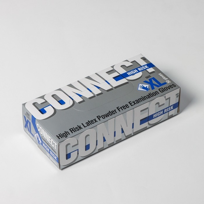Перчатки латексные неопудренные High Risk, смотровые, нестерильные, текстурированные, размер XL, 35 гр, 50 шт/уп (25 пар), цвет голубой